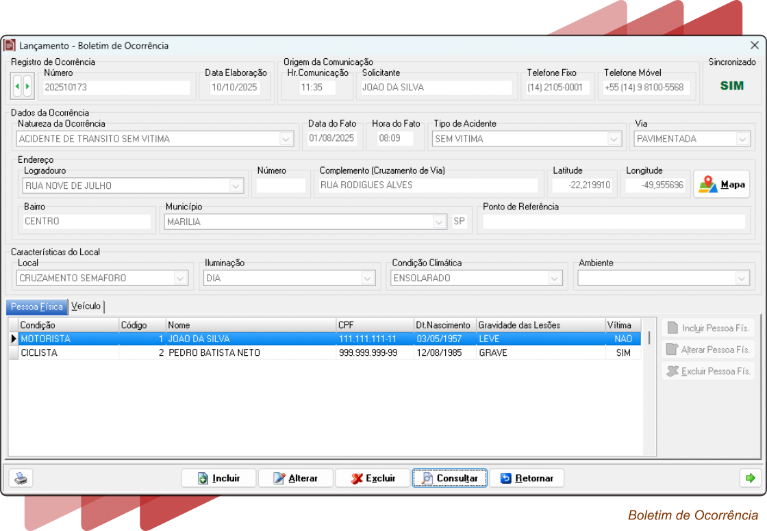 Controle de todos os dados relacionados a um boletim de ocorrência, como veículos e condutores, vítimas e testemunhas, locais dos acidentes, entre outras informações