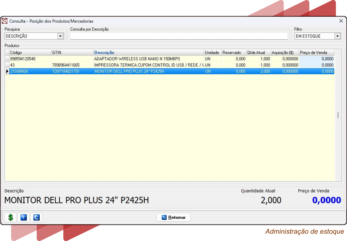Gerenciamento individual do estoque mínimo e máximo, incluindo materiais de aplicação imediata