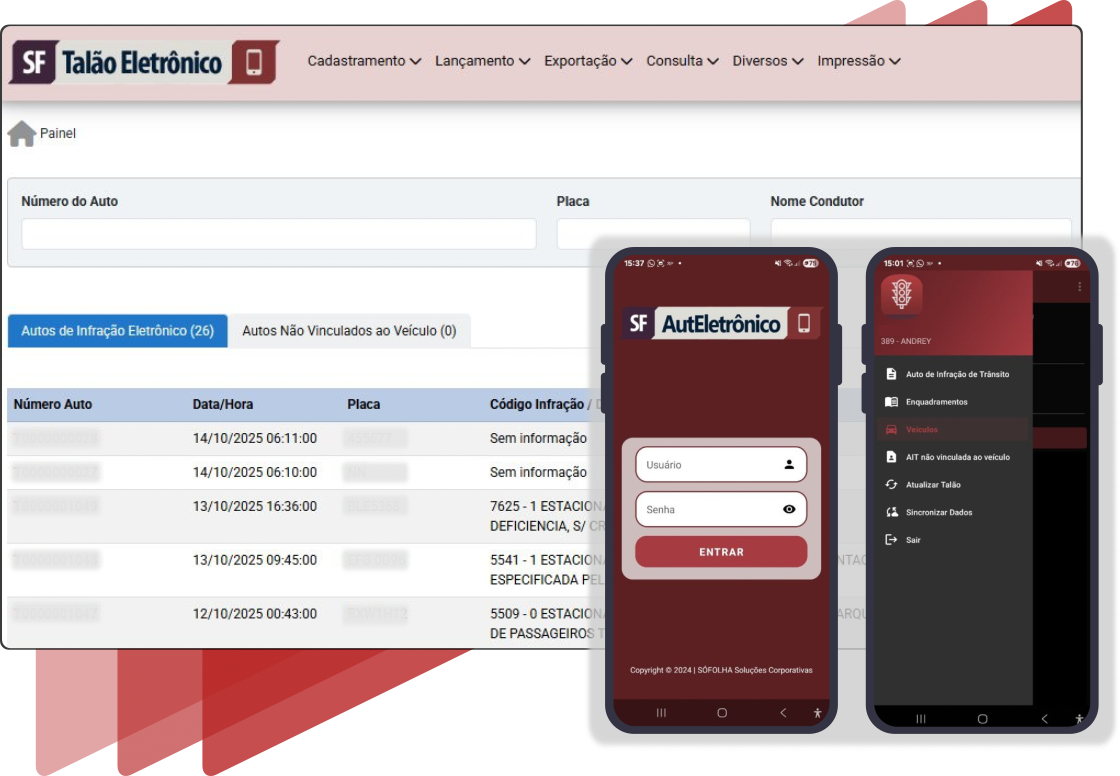 Módulos voltados ao processamento dos autos de infração de trânsito do município, auxiliando no monitoramento de veículos, gestão de estacionamentos, vagas especiais e muito mais.