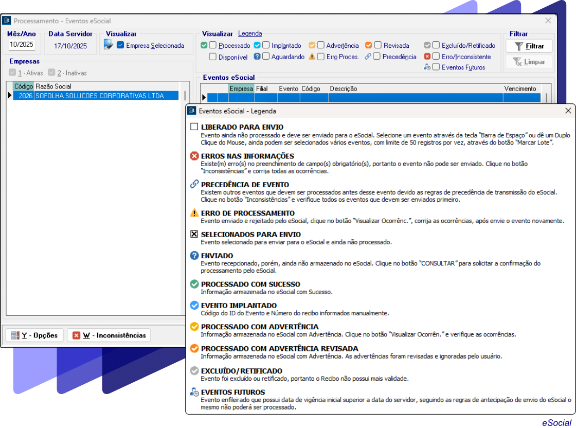 Os seguintes eventos estão disponíveis para apuração e envio do eSocial no SFDPessoal