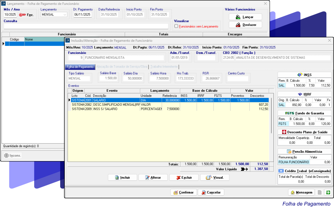 Inclusão de proventos e descontos diretamente na folha de pagamento e controle automático do benefício de salário-família dos dependentes